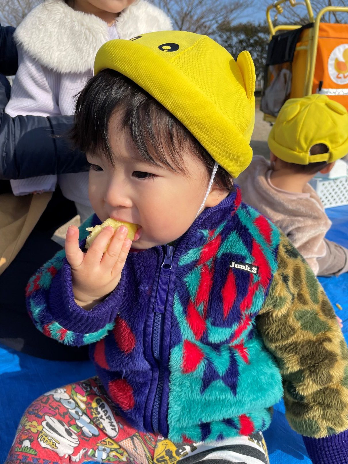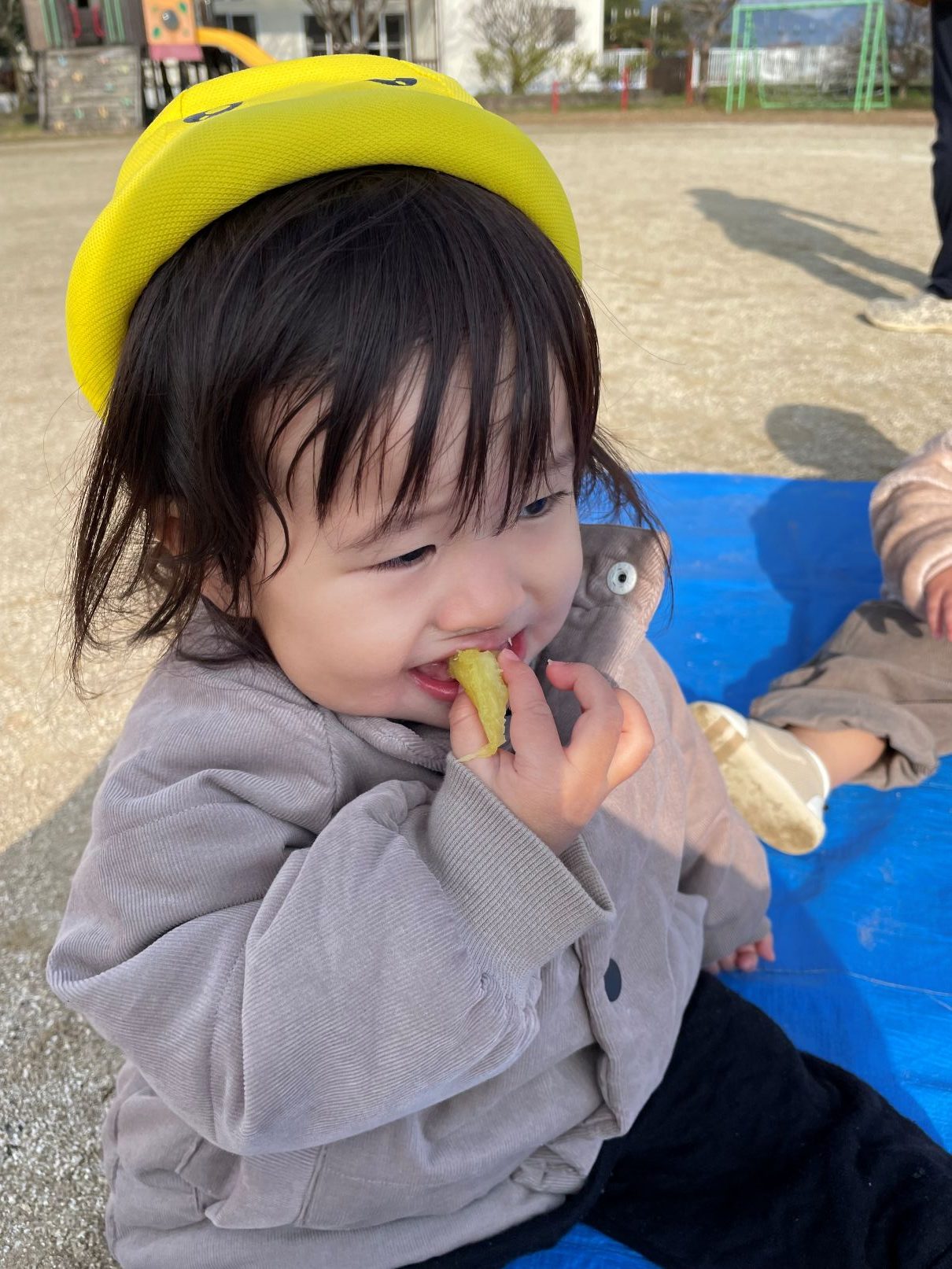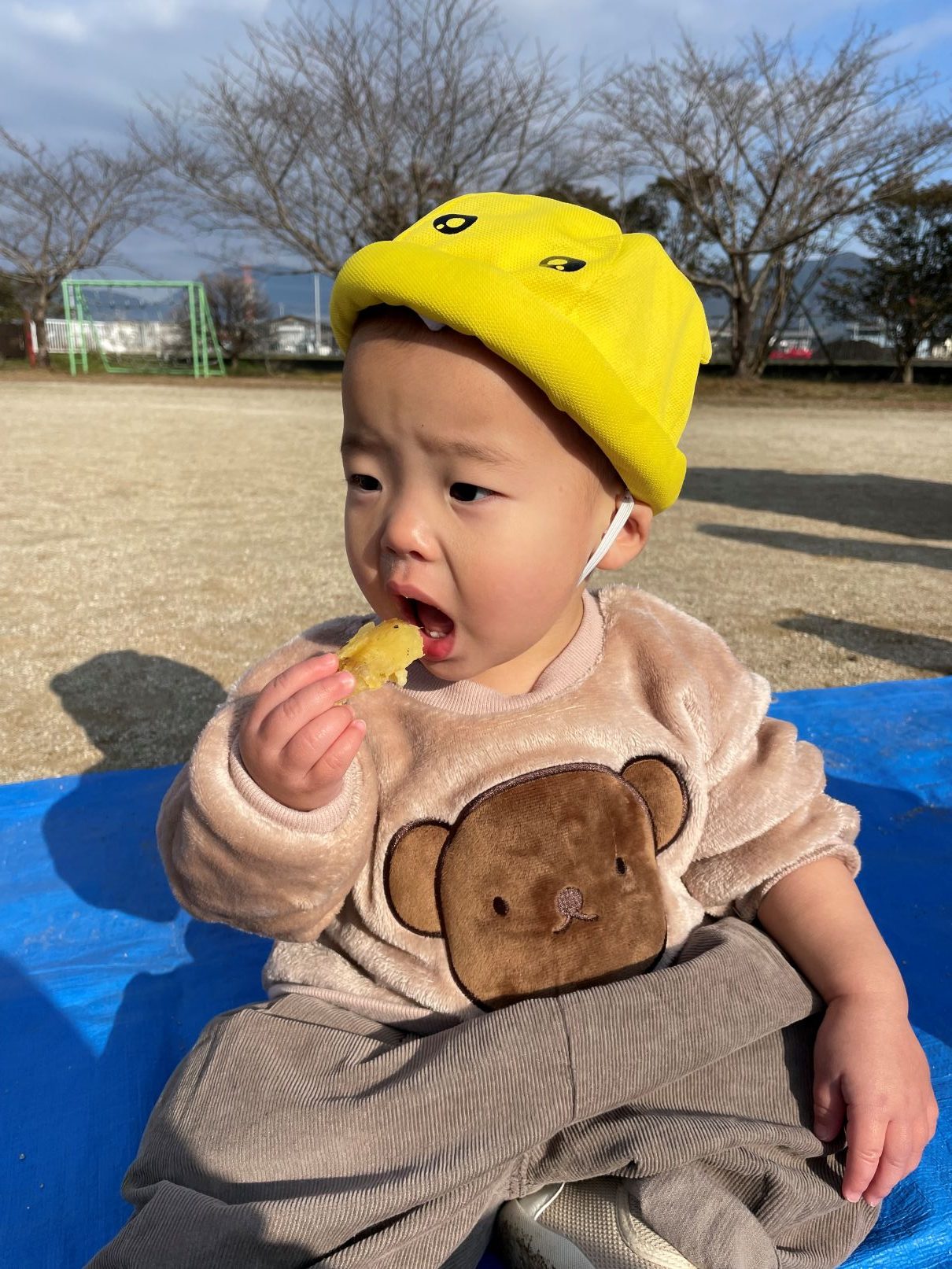 冬野菜の収穫をしました! 「 鶴田先生何してるのかな?」芋を焼く姿をジーっと見守る子ども達。