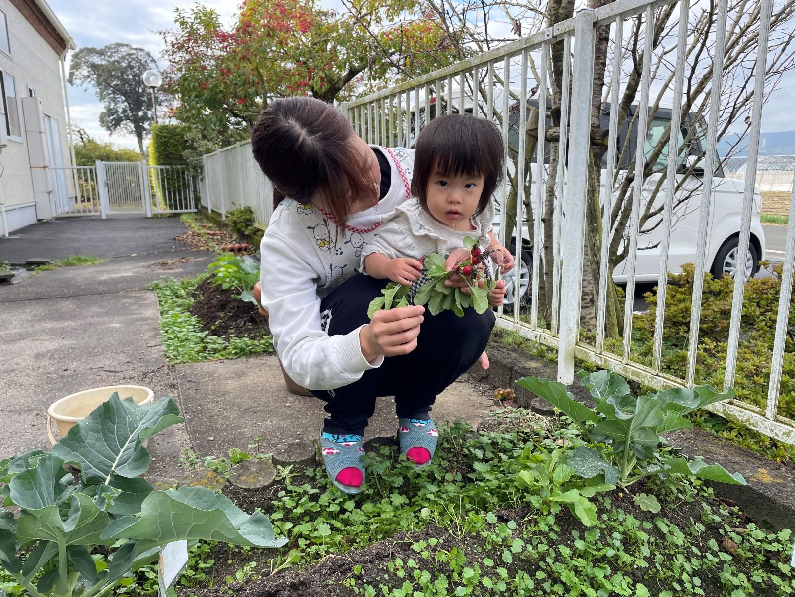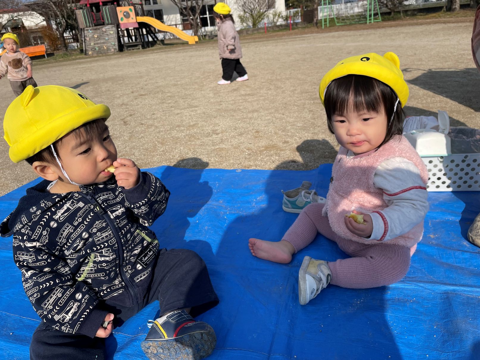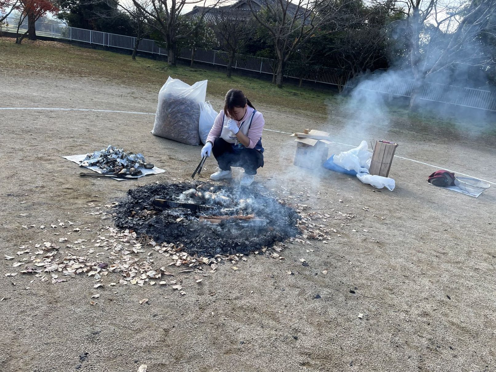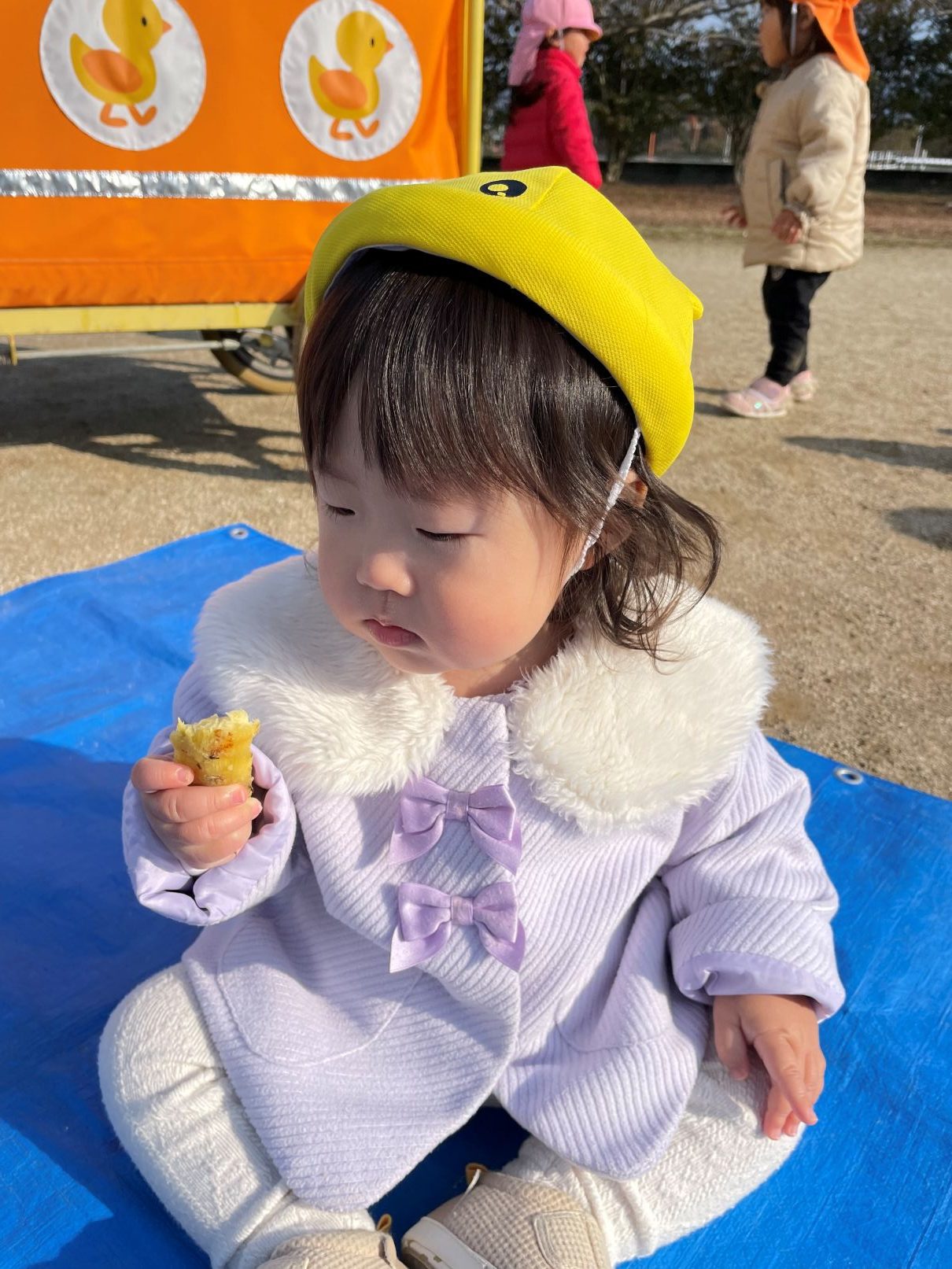 冬野菜の収穫をしました! 「 鶴田先生何してるのかな?」芋を焼く姿をジーっと見守る子ども達。
