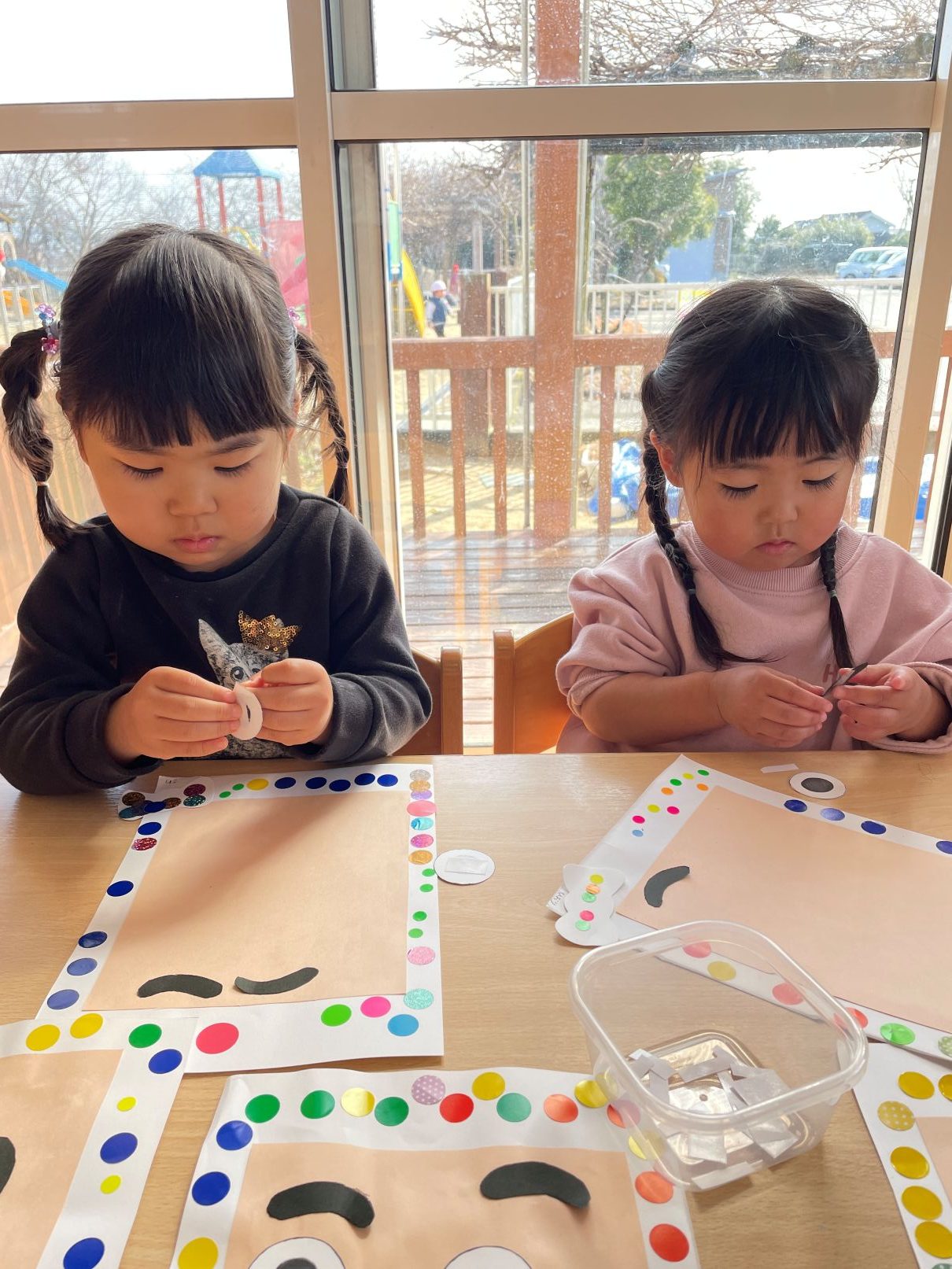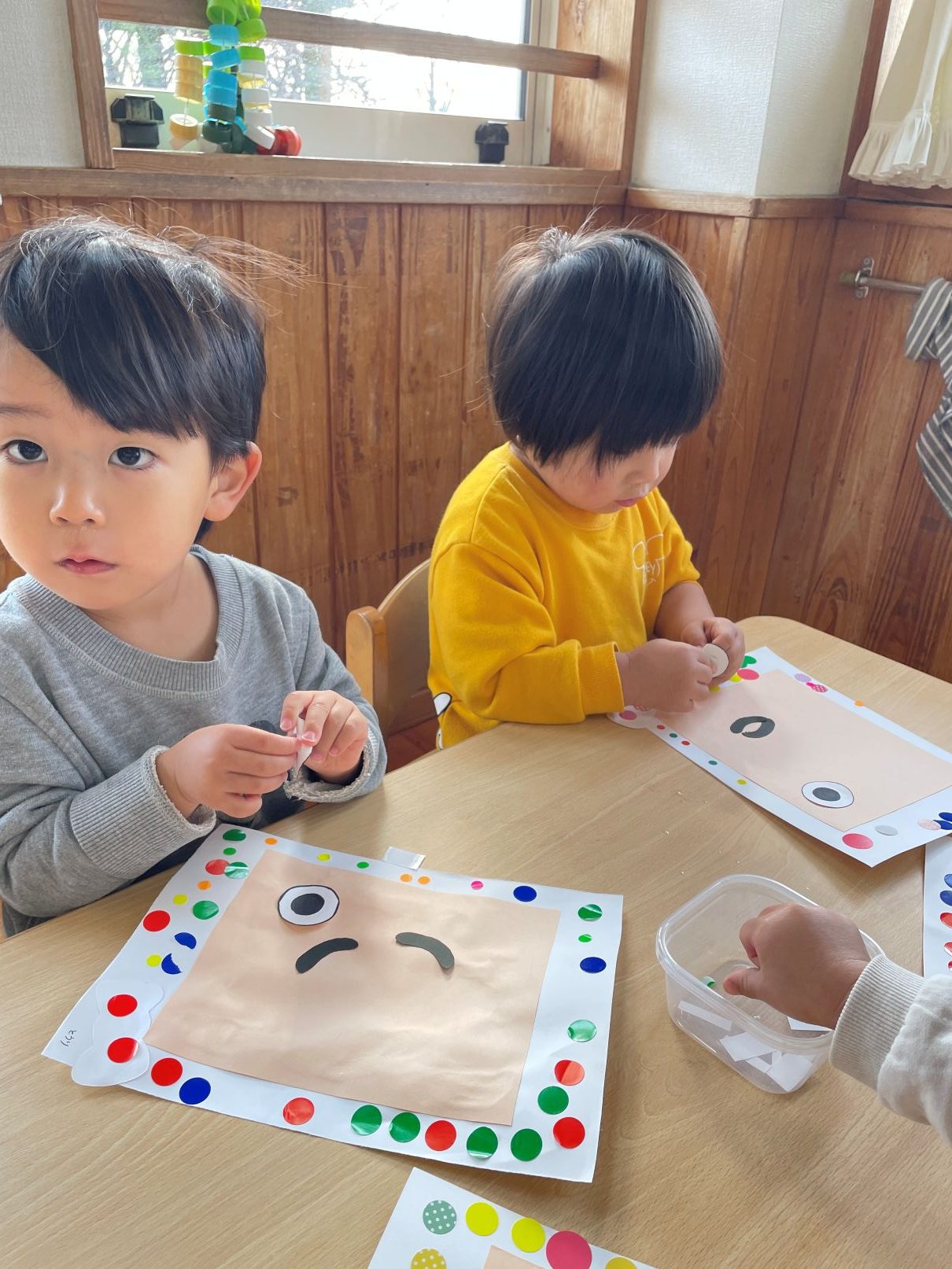「笑う門には福来る」福笑いを作りました!個性豊かなかわいい表情に思わず笑みがこぼれますね。