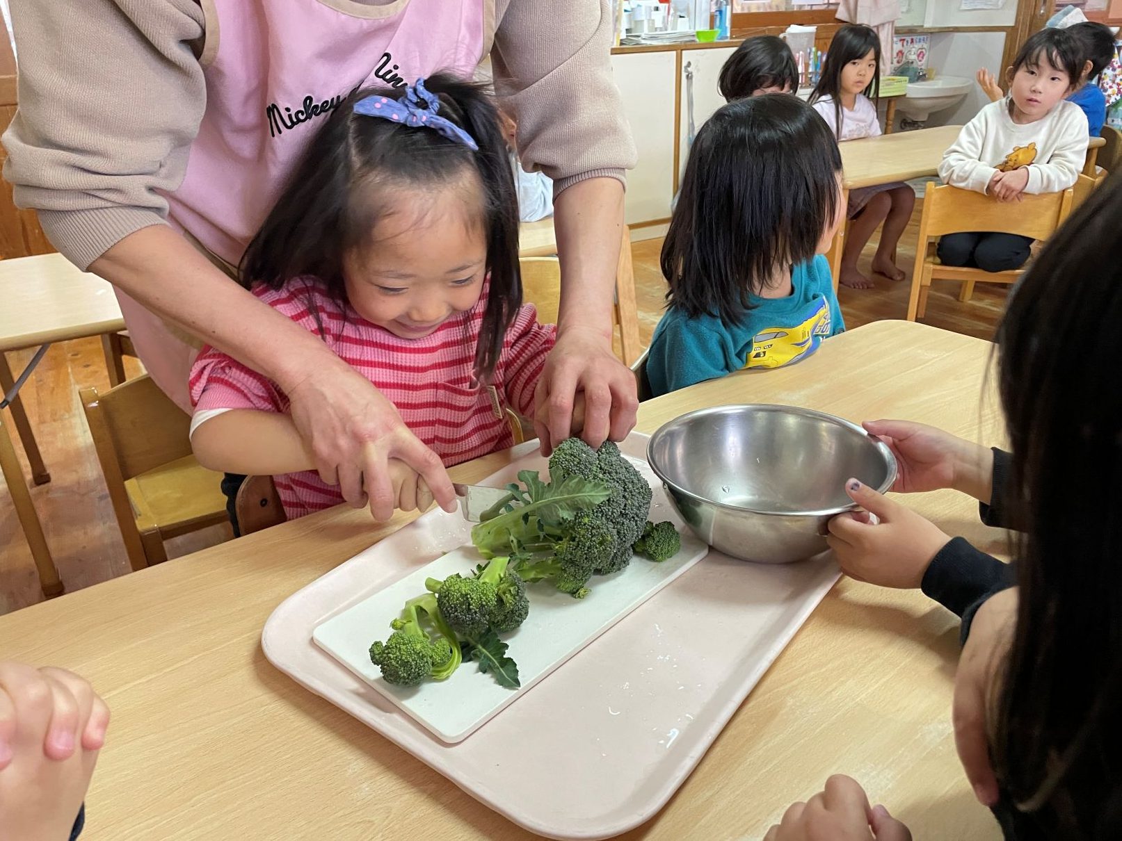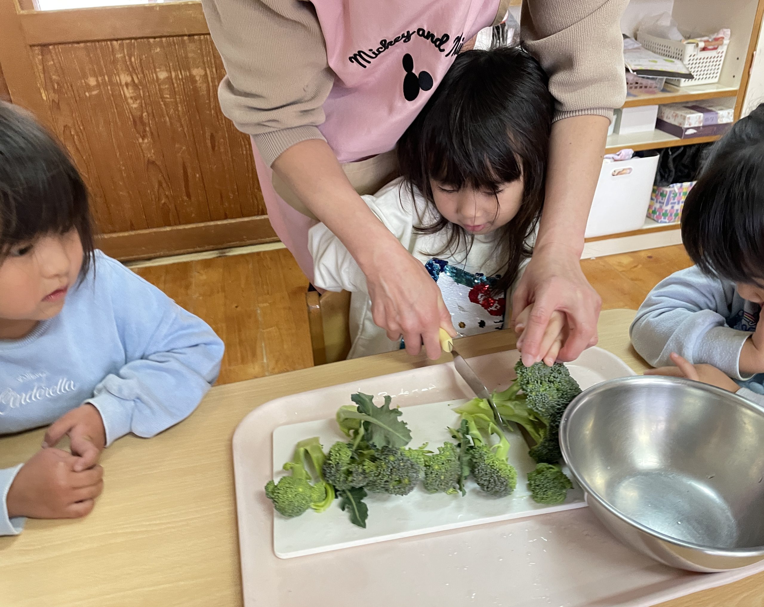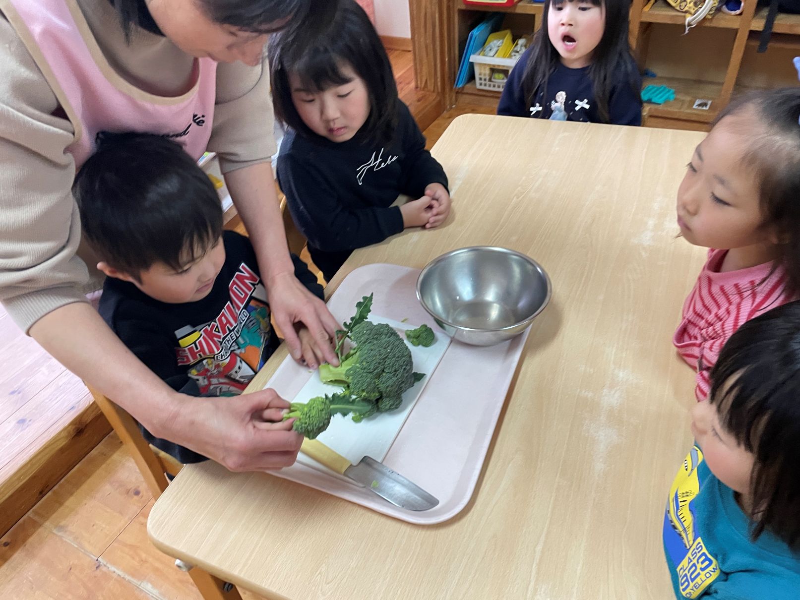 ブロッコリーを収穫して、小房に切る体験をしました。