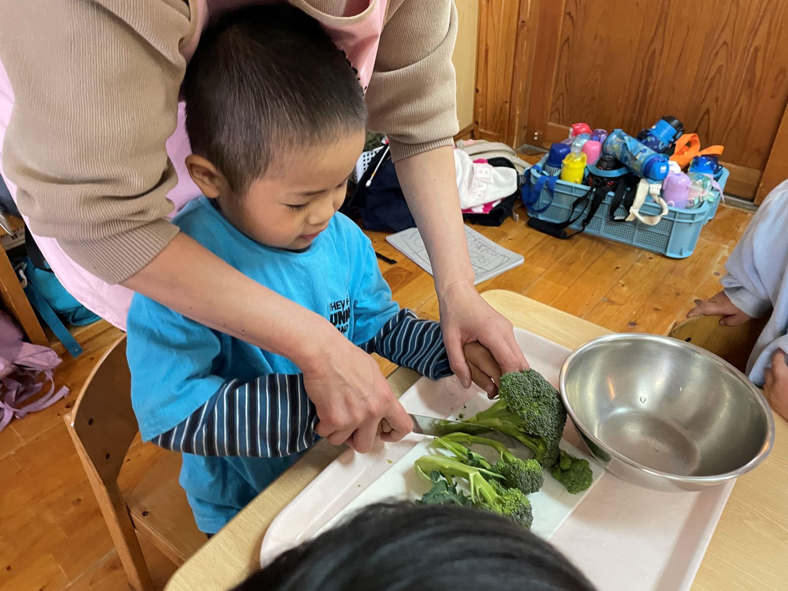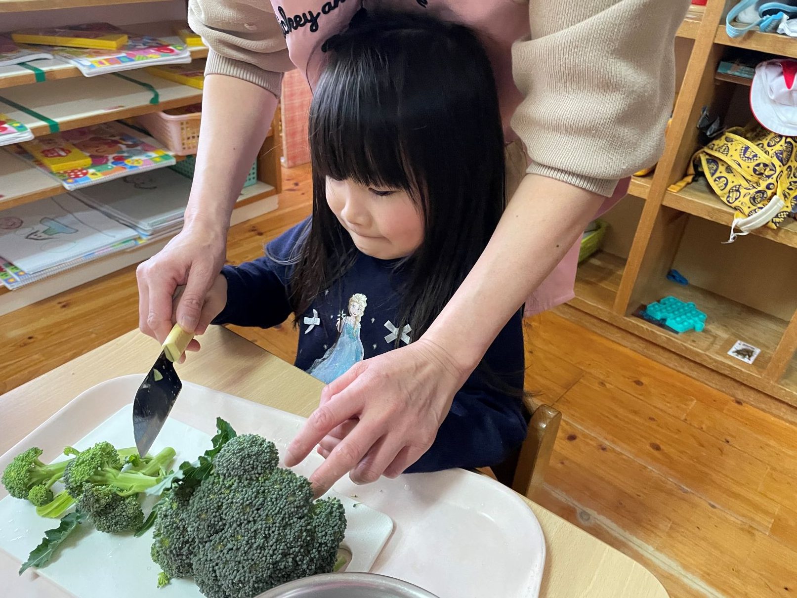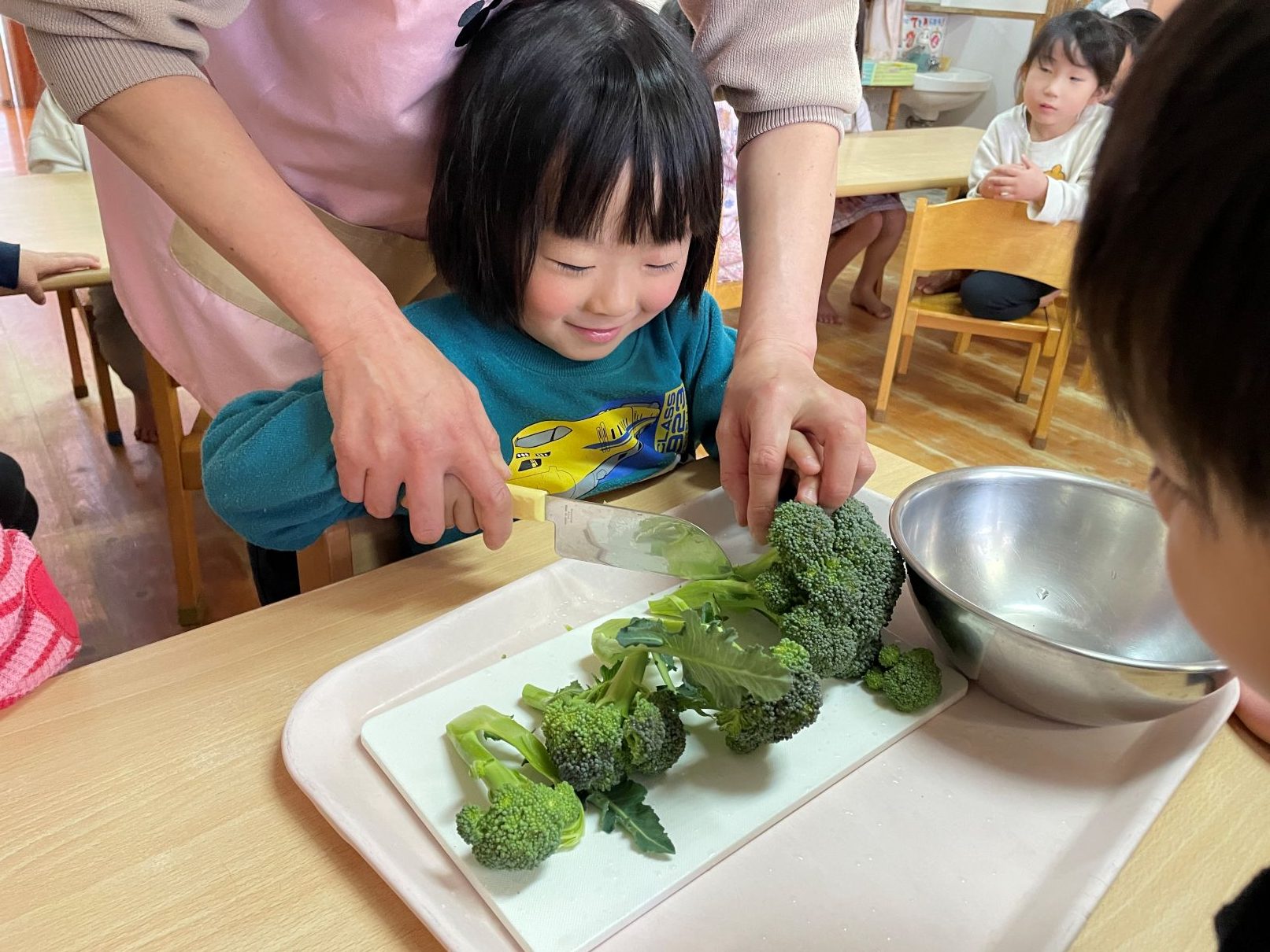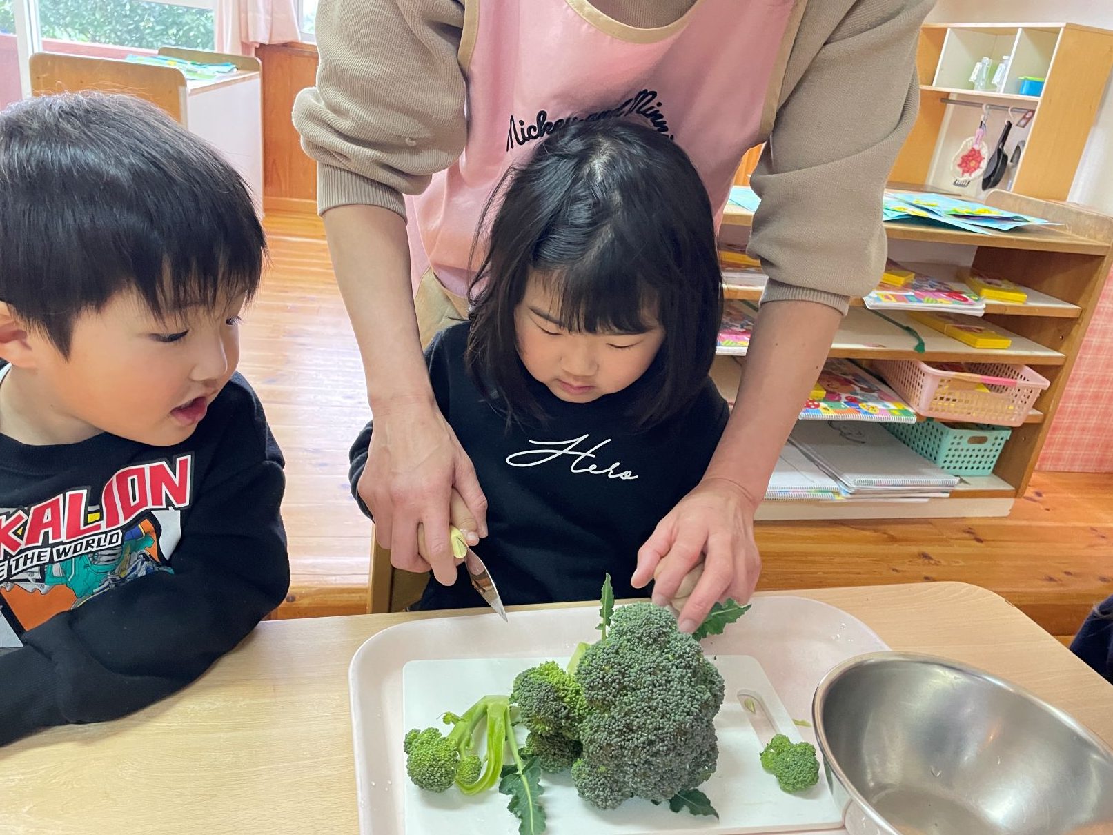 ブロッコリーを収穫して、小房に切る体験をしました。
